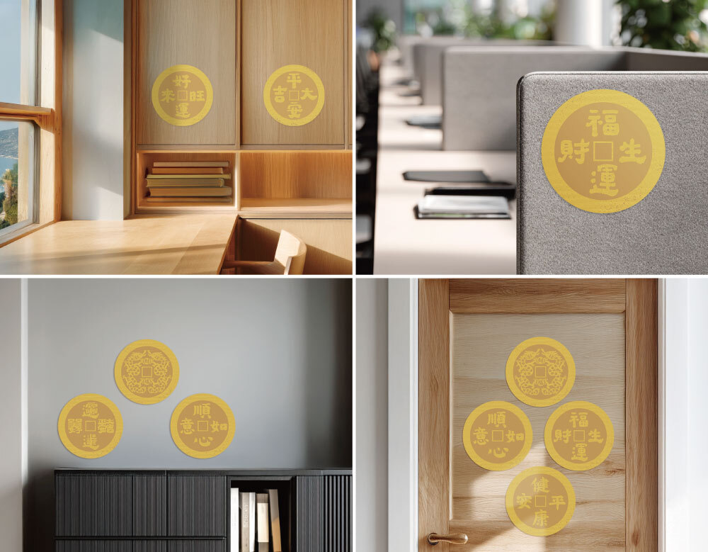 ● 貼在居家、辦公室等都招福討喜。